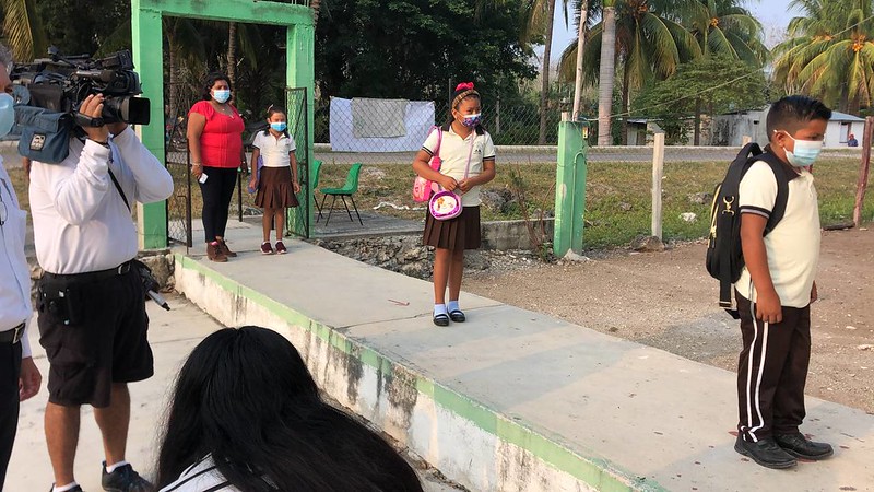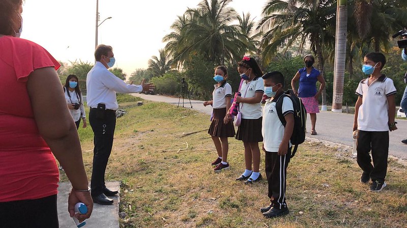 Después de permanecer un año con clases a distancia a causa de la pandemia de Covid-19, este lunes estudiantes de nivel básico de Campeche retornaron a las aulas de forma presencial bajo estrictas normas de sanidad para evitar contagios de coronavirus.