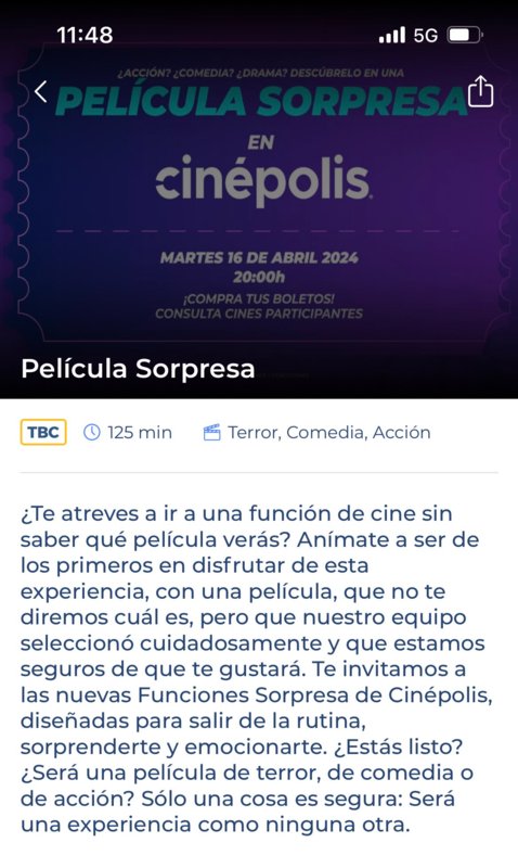 Pues bien, esa nueva dinámica que lanzará próximamente Cinépolis en varias salas de México se llama “Película Sorpresa” y tendrá la finalidad de impactar a los asistentes al cine.