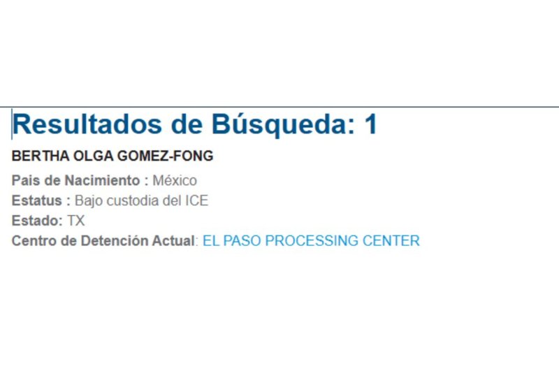 De acuerdo con reportes, Gómez Fong permanece bajo custodia en un centro migratorio ubicado en El Paso, ciudad donde residía, mientras se resuelve su situación legal en materia migratoria.