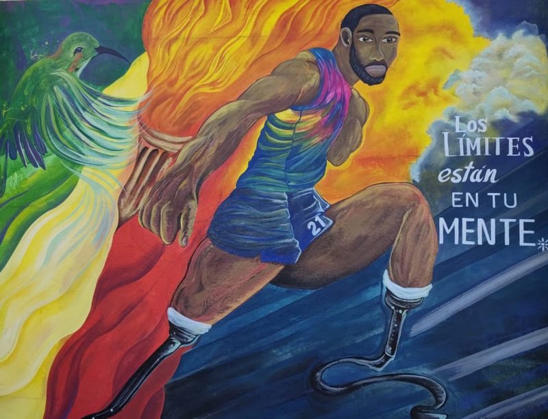 El segundo lugar fue para Gerardo Salas de Jalpa de Méndez con su mural “Atletismo” donde plasmó esta disciplina, teniendo como figura principal a una persona paralímpica.