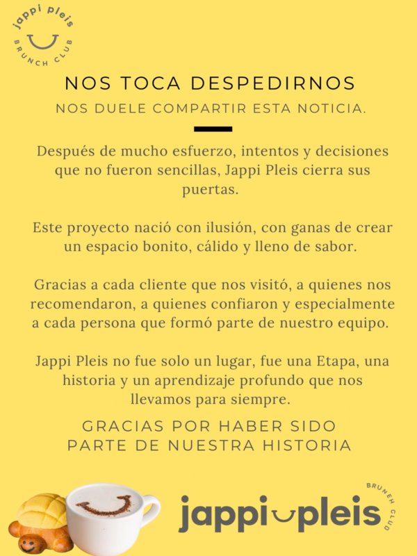 El restaurante Jappi Pleis anunció este miércoles que cerrará sus puertas en Villahermosa y agradeció a todos sus clientes por su visita, así como a los integrantes que formaron parte de su equipo.
