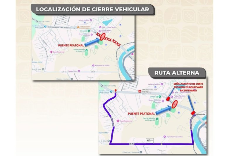 La Secretaría de Ordenamiento Territorial y Obras Públicas (SOTOP) de Tabasco informó que este domingo 19 de abril se realizarán cierres intermitentes a la circulación del boulevard Bicentenario, frente al Parque Tabasco 'Dora María', para la colocación de la estructura del puente peatonal.